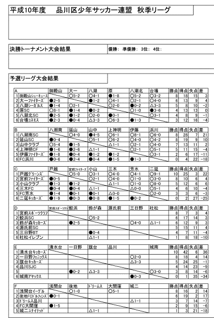 平成10年度連盟 平成11年度連盟 平成12年度連盟 平成13年度連盟 平成14年度連盟 平成15年度連盟 平成16年度連盟