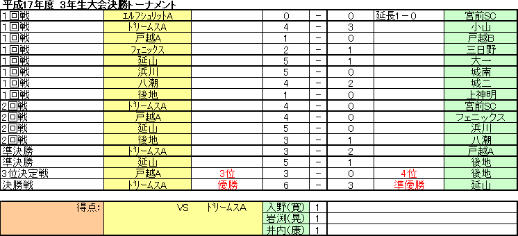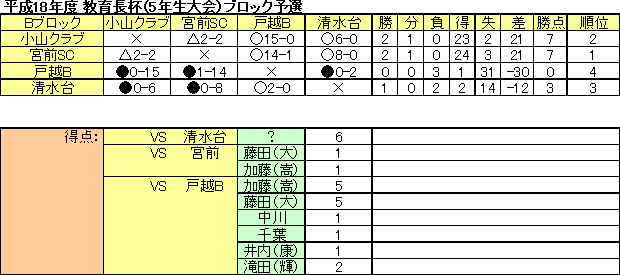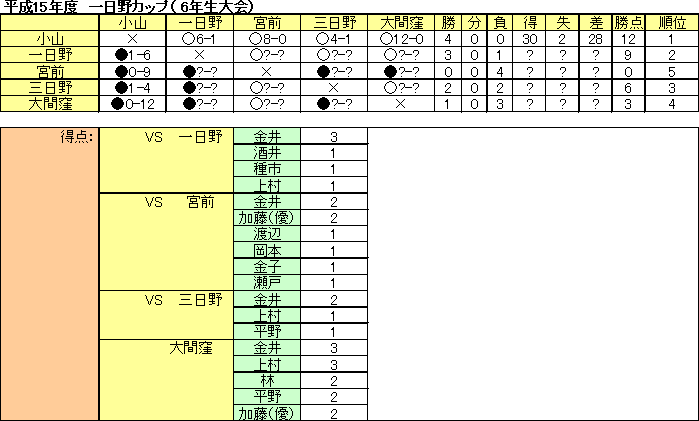 平成15年度予選小山 平成15年度2位グループ小山 平成16年度予選小山 平成16年度決勝小山 平成17年度予選小山